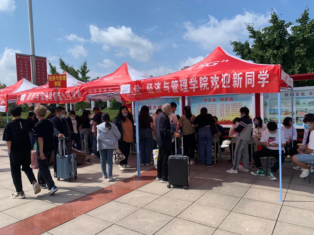 迎新工作如火如荼,到处都是忙碌的身影。学长学姐们不厌其烦地回答着新同学和家长提出的问题。志愿者主动帮忙接送行李,一路谈笑风生,不断为新生介绍着校园风光。人头攒动,秩序井然。一张张热情的笑脸,一句句亲切的问候,一项项贴心的服务,欢迎来自祖国各地的莘莘学子。两天的迎新工作,志愿者们平均每天要在迎新点和新生宿舍之间往返数十趟。但看着家长们感动的笑容,听着学弟学妹们感激的话语,迎新人员辛苦的同时也感到非常充实。