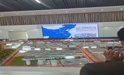 在工作人员的带领下,我们首先参观了周口港区总体沙盘规划,对周口港有了一个初步了解。周口港2005年12月建成,2006年4月投入使用。周口港是河南省周口市的一个内河港口,是国家规划的91个主要港口之一、是国家综合立体交通网规划纲要确定的全国36个内河主要港口之一,也是河南省唯一一个全国主要港口。截至2022年2月,周口港已经形成年3500万吨以上的货运周转能力。通江达海开通了至淮安港、太仓港、连云港港、大丰港、上海港5条国内集装箱航线和至洛杉矶长滩港国际集装箱航线。