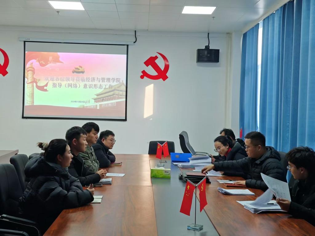 2024年12月26日下午3:00,学校教师工作部部长刘宗阳带队,对伟德betvlctor体育官网开展意识形态工作专项督查。督查内容主要包括:理论学习中心组学习情况、每半年一次专题研究(网络)意识形态工作情况、专题研判本单位意识形态领域风险情况等内容。刘宗阳在全面检查过我院的工作后给予了高度评价,同时针对后续意识形态工作的开展提出了意见。我院党委副书记牛永伟表示,在经过学校的督查后,将认真总结2024年本单位(网络)意识形态工作不足之处,根据学校提出的指导意见,下一步继续做好意识形态领域的工作。
