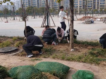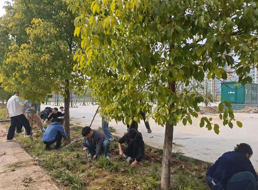 活动进入环保行动环节。学院通过校内广播、宣传栏、电子屏等多种渠道,科普植树节的由来、意义以及植物对生态环境的重要作用。师生们了解到树木能防风固沙、净化空气、涵养水源,深刻认识到参与校园绿化活动的价值。在植树种草现场,伟德betvlctor体育官网书记充分发挥带头作用,积极动员全体辅导员、学生干部、党员以及入党积极分子参与其中。校团委、校学生会、校卫队等学生干部团队也不甘落后,纷纷投身到校园绿化工作中。师生们分工明确,配合默契。有的负责搬运树苗和麦冬草,有的挥动铁锹挖坑铲土,有的小心翼翼地将树苗植入坑中,还有的提水浇灌,每一个环节都进行得有条不紊。党员同志们更是以身作则,践行“一个党员一棵树,一个支部一片林”的理念,在劳动中发挥先锋模范作用。他们不仅积极完成自己的任务,还主动帮助其他师生,传授植树技巧,确保树苗的成活率。